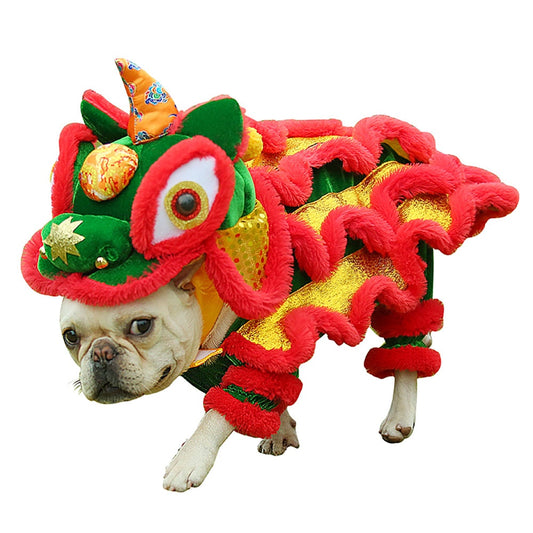 Funny Pet Costume Chinese Lion Dance Suit New Year Dress Up Apparel