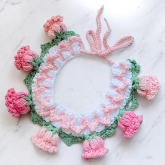 Hand Knitted Floral Pet Collar - A Touch of Springtime Elegance for Your Pet
