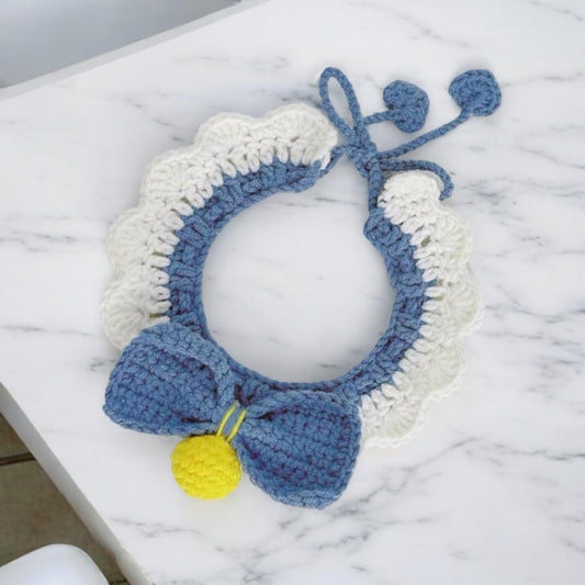 Doraemon Delight: Hand Knitted Pet Collar with Yellow Bell| Crocheted Cat Dog Collar| Gifts for Pets| Pet Scarf| Pet Accessories